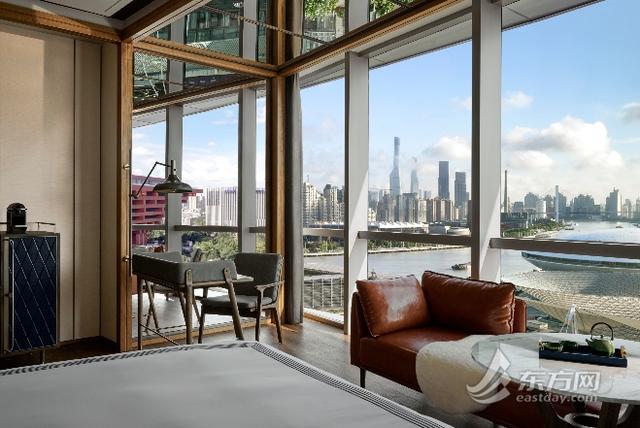 酒店拥有254间风尚客房与套房,延续品牌标志性的现代工业风格与居家风尚。每间客房均配备落地窗,将黄浦江景与城市天际线尽收眼底,木制地板搭配手工地毯、金属细节与暖色调定制家具,辅以展馆艺术灵感装饰,尽显格调。客房内大理石浴室、精选迷你吧、戴森吹风机及咖啡机等舒适设施一应俱全,更有标志性的“音乐入眠时刻”晚安礼遇与专属播放清单,让宾客在光影与音乐中沉浸魔都夜色。