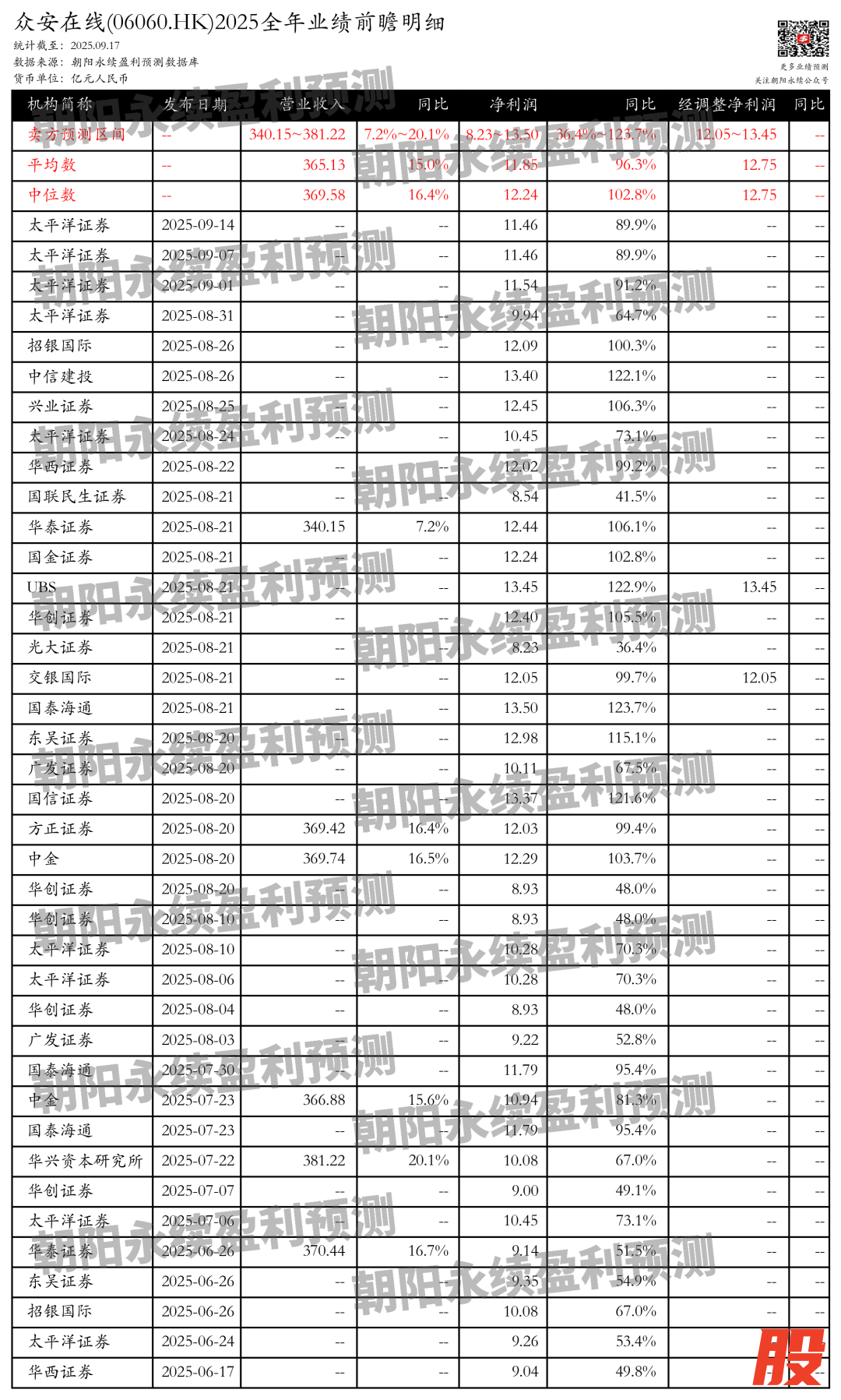 截至2025年09月17日,根据朝阳永续季度业绩前瞻数据: